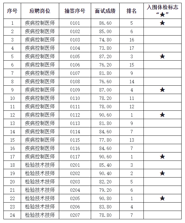 根据《嘉兴市疾病预防控制中心2021年公开招聘高层次人才公告》,经资格初审、复审及面试,按面试成绩从高分到低分1:1比例确定体检人员名单。